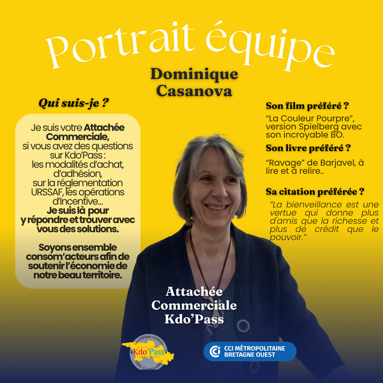 Aujourd’hui nous vous présentons Dominique, qui est notre Attachée Commerciale Kdo’Pass.