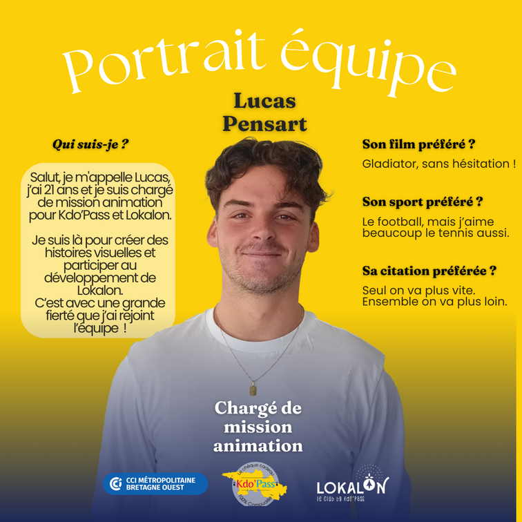 Aujourd’hui nous vous présentons Lucas, qui est chargé d’animation Kdo’Pass et Lokalon en alternance.